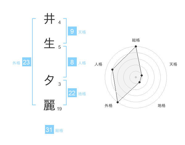井生 夕麗さんを姓名の画数から五運を鑑定