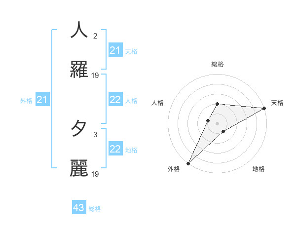 人羅 夕麗さんの天格は21画の5点!