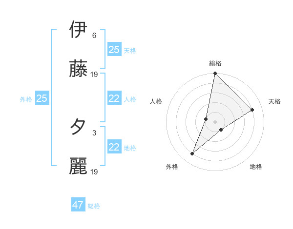 伊藤 夕麗さんの総格は47画の5点!
