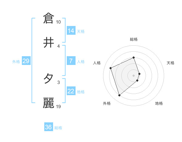 倉井 夕麗さんを姓名の画数から五運を鑑定