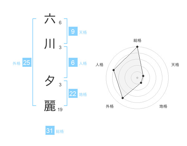 六川 夕麗さんを姓名の画数から五運を鑑定