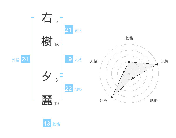 右樹 夕麗さんを姓名の画数から五運を鑑定