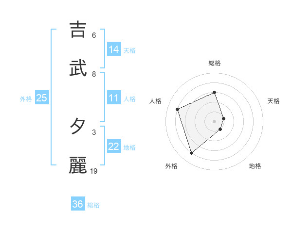 吉武 夕麗さんの天格は14画の1点!