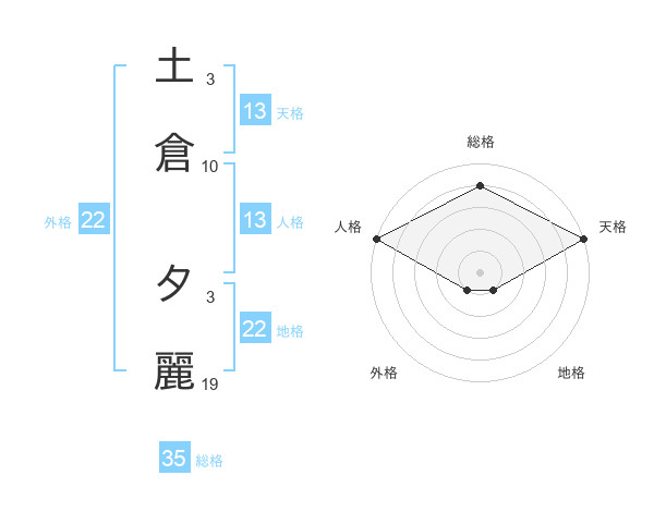 土倉 夕麗さんの天格は13画の5点!