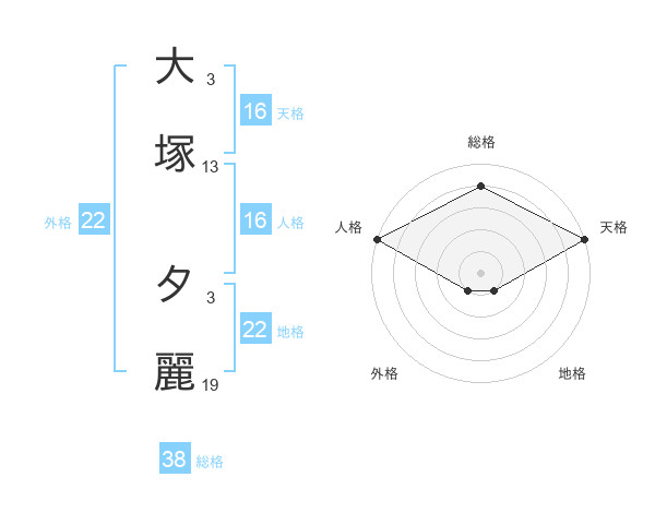 大塚 夕麗さんの天格は16画の5点!
