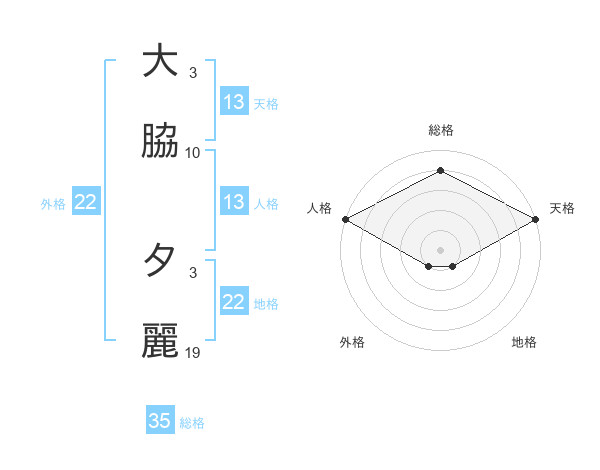 大脇 夕麗さんを姓名の画数から五運を鑑定