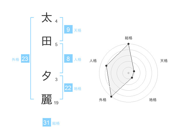 太田 夕麗さんを姓名の画数から五運を鑑定