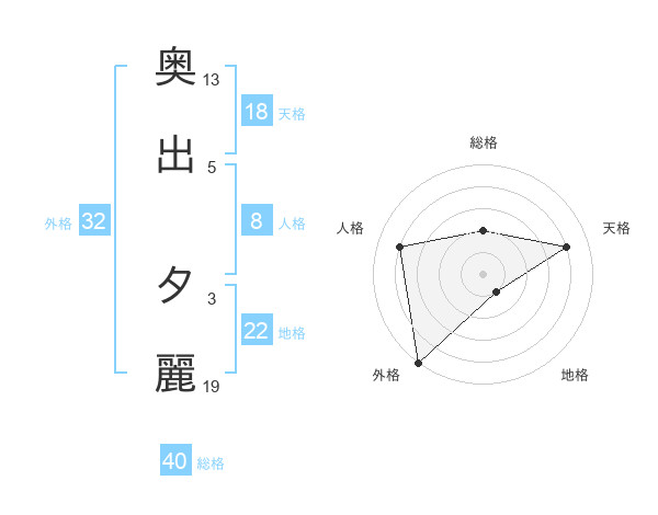 奥出 夕麗さんの天格は18画の4点!