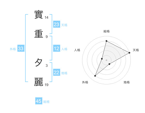 實重 夕麗さんの天格は23画の5点!