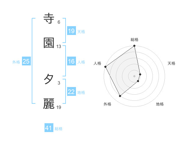 寺園 夕麗さんの総格は41画の5点!
