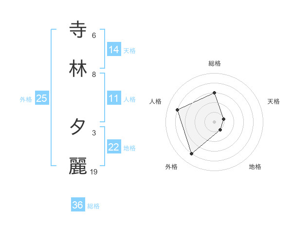 寺林 夕麗さんの天格は14画の1点!
