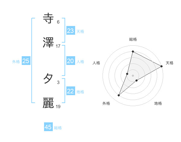寺澤 夕麗さんの天格は23画の5点!
