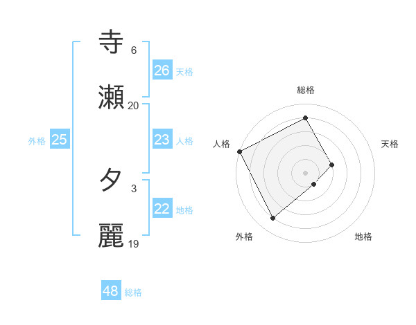 寺瀬 夕麗さんを姓名の画数から五運を鑑定