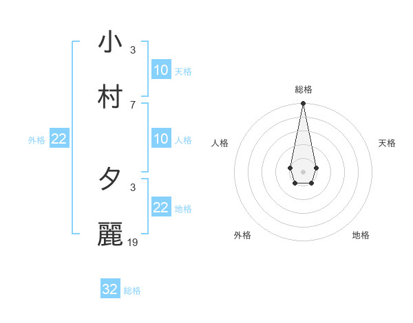 小村 夕麗さんの外格は22画の1点!