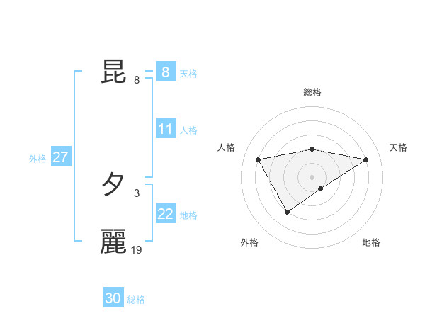 昆 夕麗さんの総格は30画の2点!