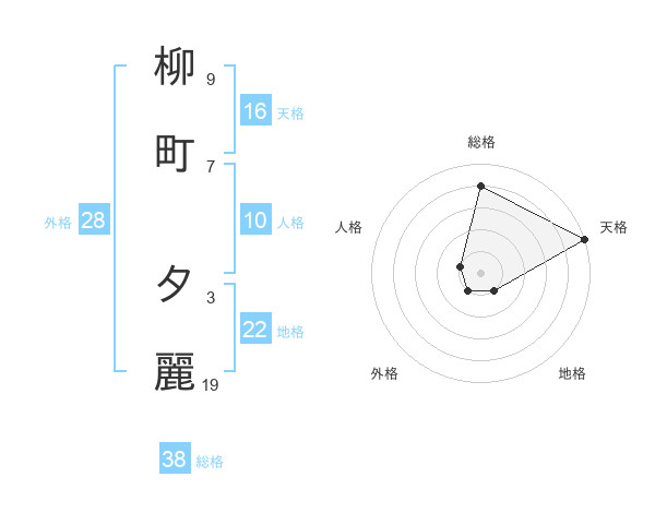 柳町 夕麗さんの総格は38画の4点!