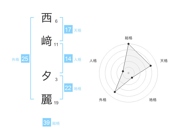 西﨑 夕麗さんを姓名の画数から五運を鑑定