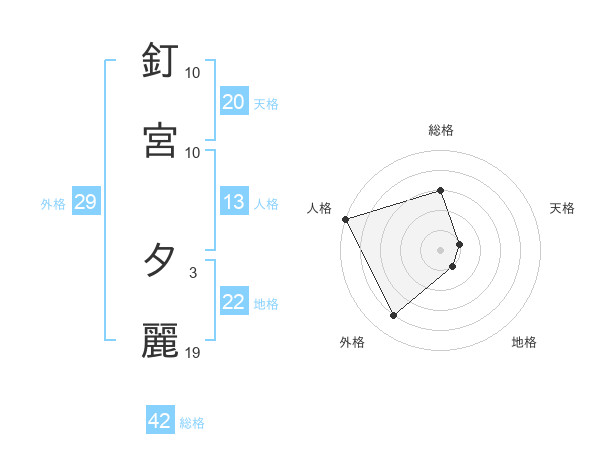釘宮 夕麗さんを姓名の画数から五運を鑑定