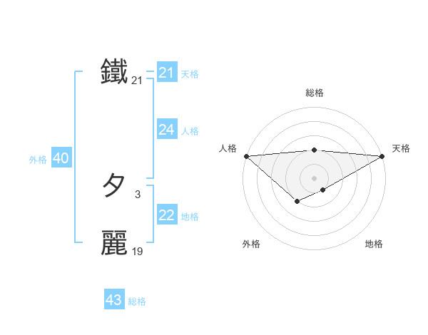 鐵 夕麗さんを姓名の画数から五運を鑑定
