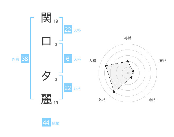 関口 夕麗さんの総格は44画の2点!