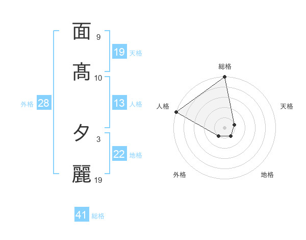 面髙 夕麗さんの総格は41画の5点!
