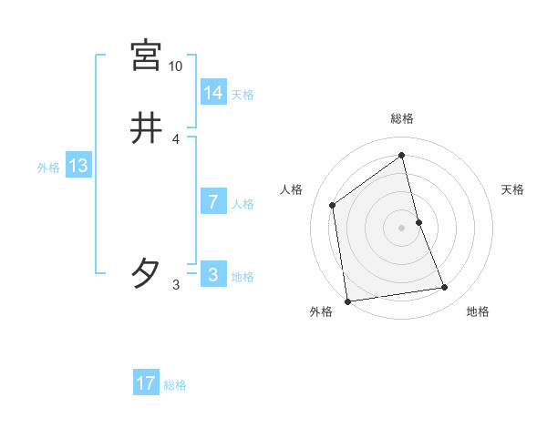 宮井 夕さんの総格は17画の4点!