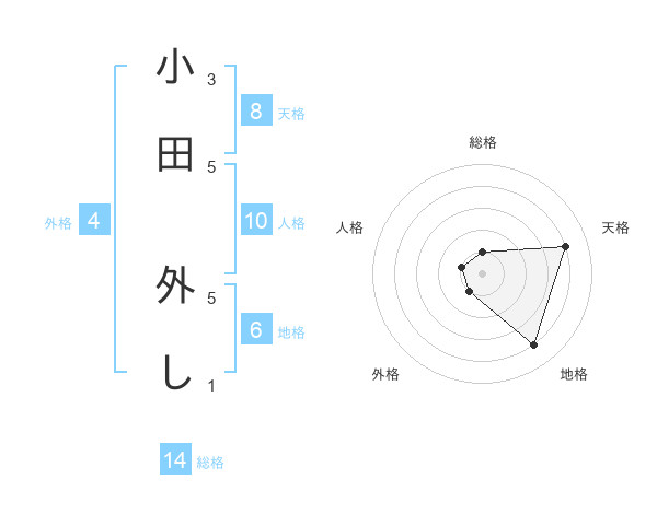 小田 外しさんの総格は14画の1点!