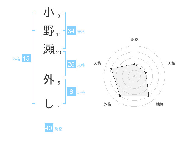 小野瀬 外しさんを姓名の画数から五運を鑑定