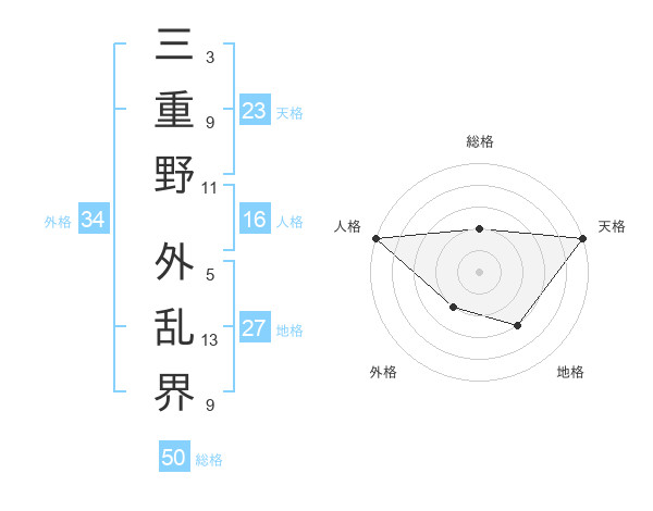 三重野 外乱界さんの総格は50画の2点!