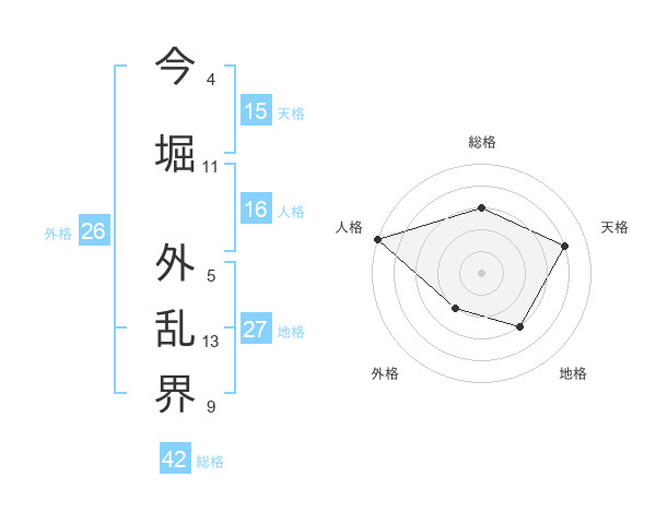 今堀 外乱界さんを姓名の画数から五運を鑑定