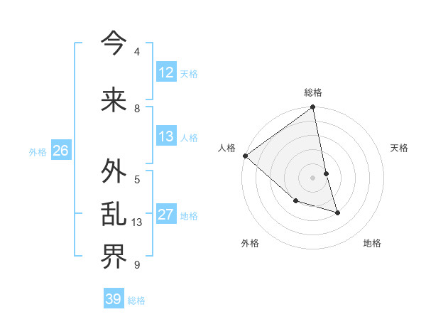今来 外乱界さんを姓名の画数から五運を鑑定