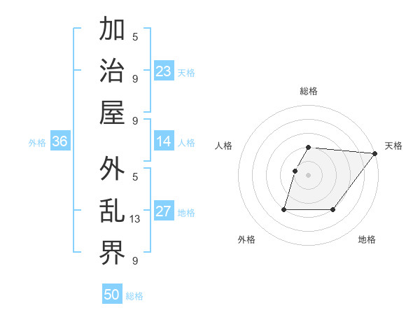 加治屋 外乱界さんを姓名の画数から五運を鑑定