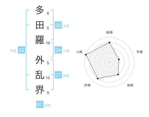 多田羅 外乱界さんの総格は57画の4点!
