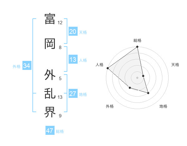 富岡 外乱界さんを姓名の画数から五運を鑑定