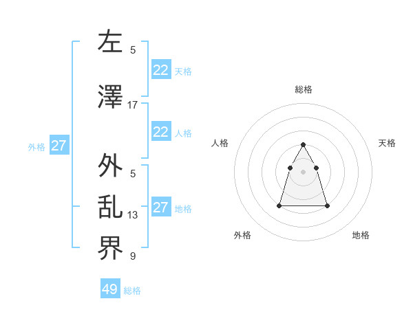 左澤 外乱界さんを姓名の画数から五運を鑑定