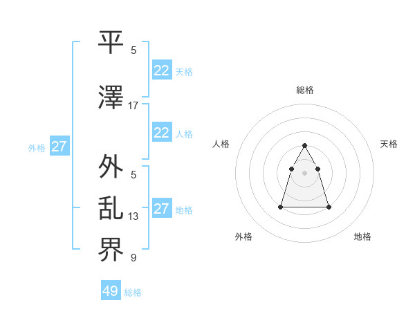 平澤 外乱界さんの総格は49画の2点!