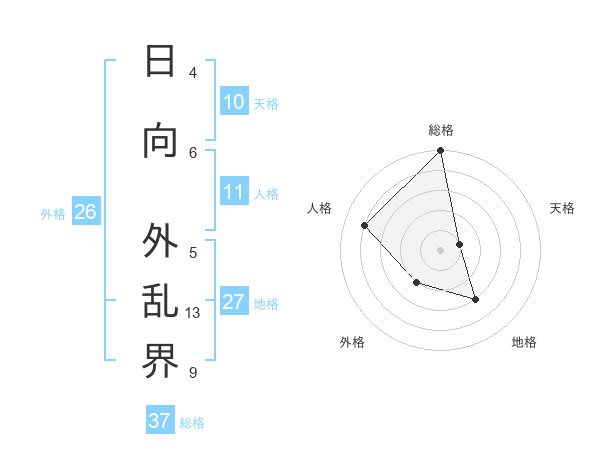 日向 外乱界さんを姓名の画数から五運を鑑定