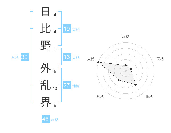 日比野 外乱界さんの総格は46画の1点!