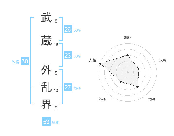 武蔵 外乱界さんを姓名の画数から五運を鑑定