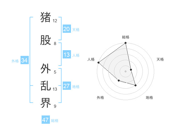 猪股 外乱界さんを姓名の画数から五運を鑑定