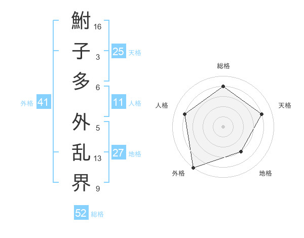 鮒子多 外乱界さんを姓名の画数から五運を鑑定