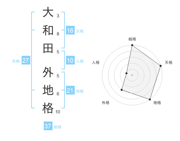 大和田 外地格さんを姓名の画数から五運を鑑定