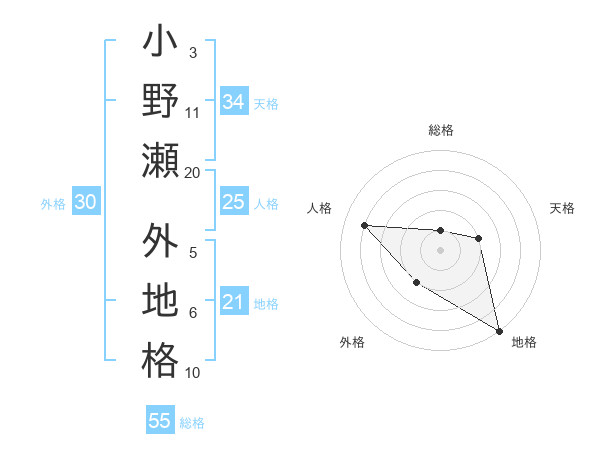 小野瀬 外地格さんの総格は55画の1点!