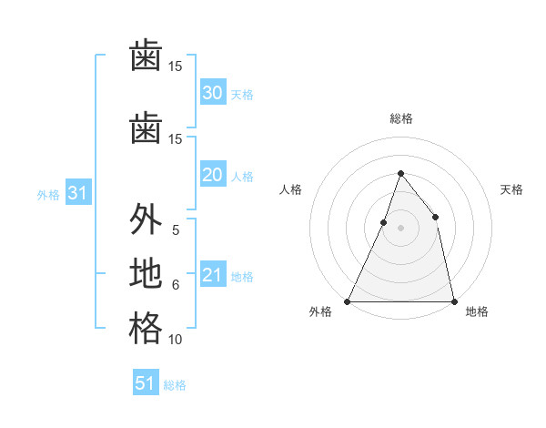 歯歯 外地格さんを姓名の画数から五運を鑑定