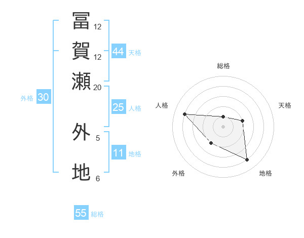 冨賀瀬 外地さんの総格は55画の1点!