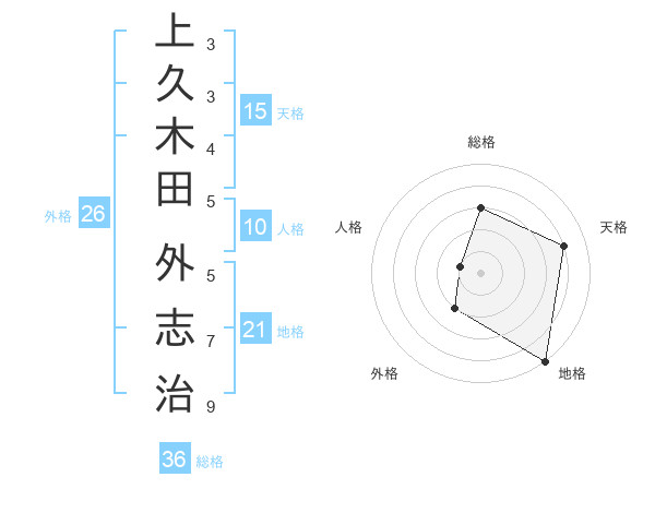 上久木田 外志治さんを姓名の画数から五運を鑑定