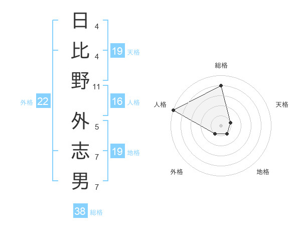 日比野 外志男さんを姓名の画数から五運を鑑定