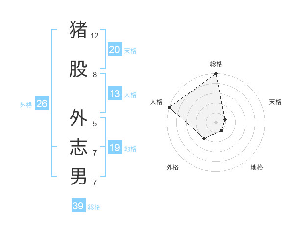 猪股 外志男さんを姓名の画数から五運を鑑定