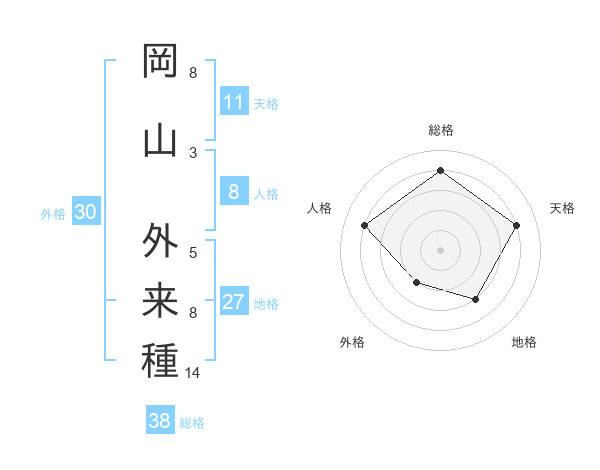 岡山 外来種さんの総格は38画の4点!
