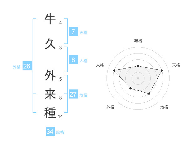 牛久 外来種さんの天格は7画の4点!